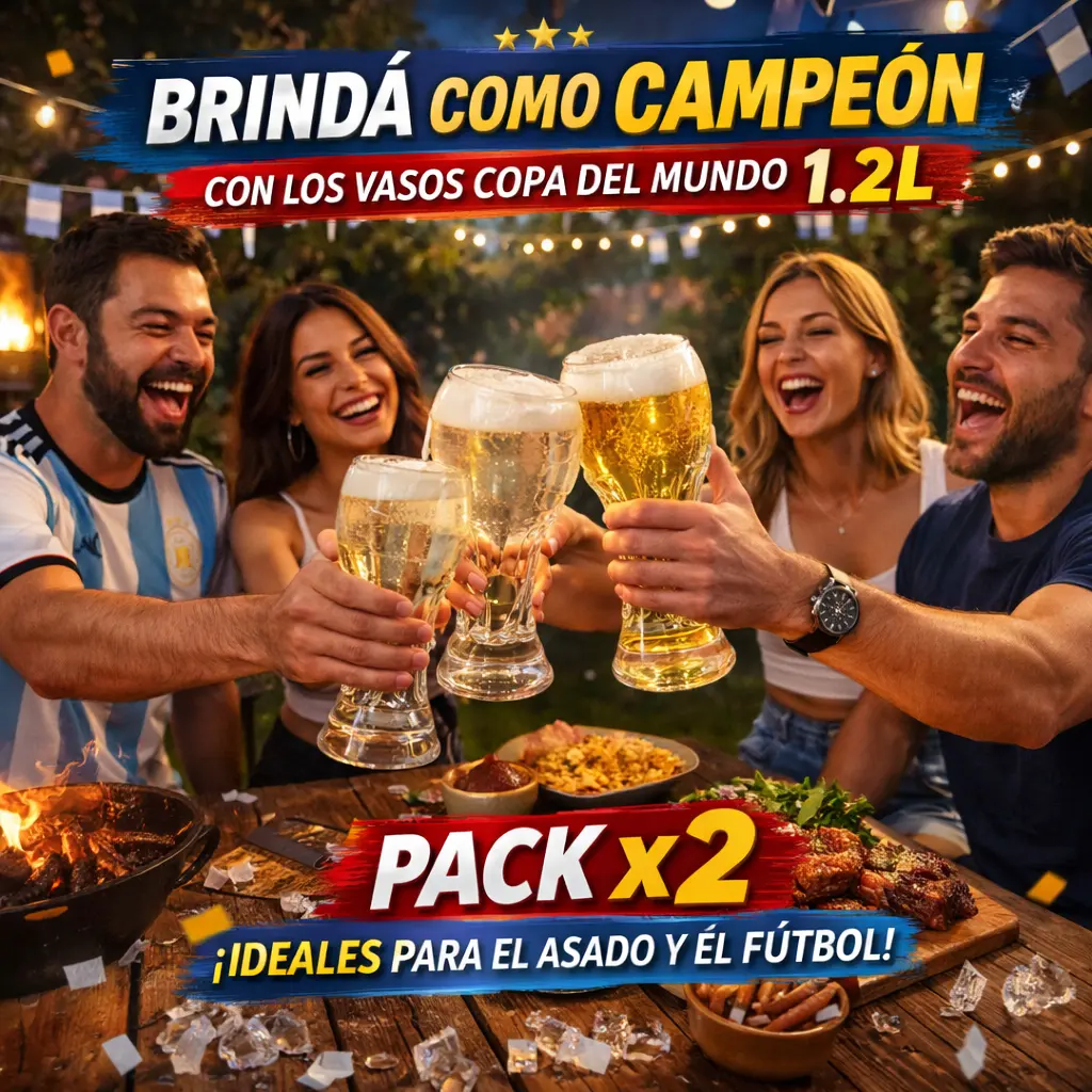 Con el Pack x2 de Vasos Copa del Mundo de 1.2 litros, cada brindis se transforma en un momento épico digno de campeones.